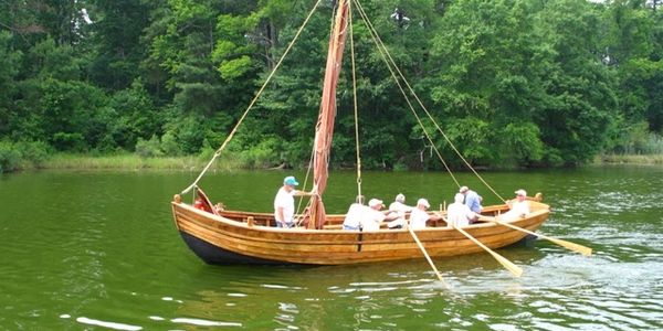 The John Smith Barge is a replica of the original style boats used by Smith during his initial exploration of the Chesapeake Bay in 1608. In his notes, he called the boat “the discovery barge.” She was a ship’s barge, designed to set anchors or ferry crew & supplies from ship to shore. She disappeared centuries before the creation of photography. If plans for her ever existed, they were lost to the passage of time. Based on descriptions by Smith and other eye witness accounts, volunteers at the Reedville Fishermen’s Museum carefully designed and reconstructed this vital link to the past.